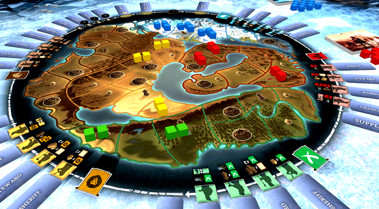 You start the game with five loyalty tokens, each corresponding to one of the five different empires, bet randomly on a loyalty value. Your primary goal is to ensure that when the game ends, the empires you are most loyal to control the most cities across the globe.