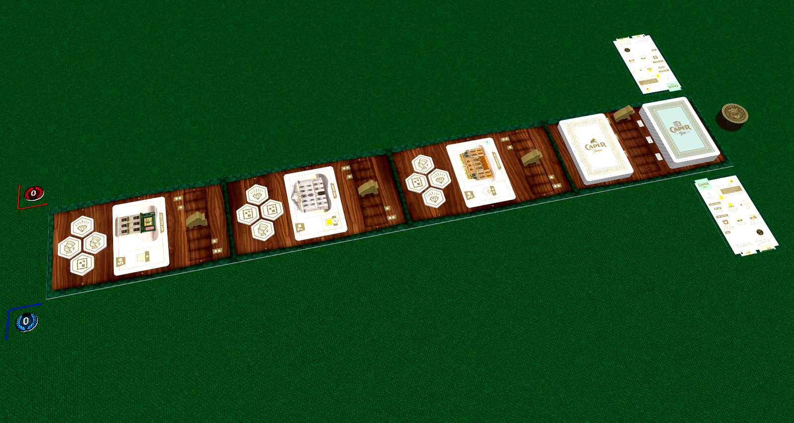 Caper: Europe is a two-player drafting game. You take turns sending thieves to famous locations across Europe, vying for control through special card powers. These thieves have tricks up their sleeves, which you can enhance by adding gear to them. And controlling the locations isn't everything because priceless stolen goods await the thief who's clever enough to snatch them first.