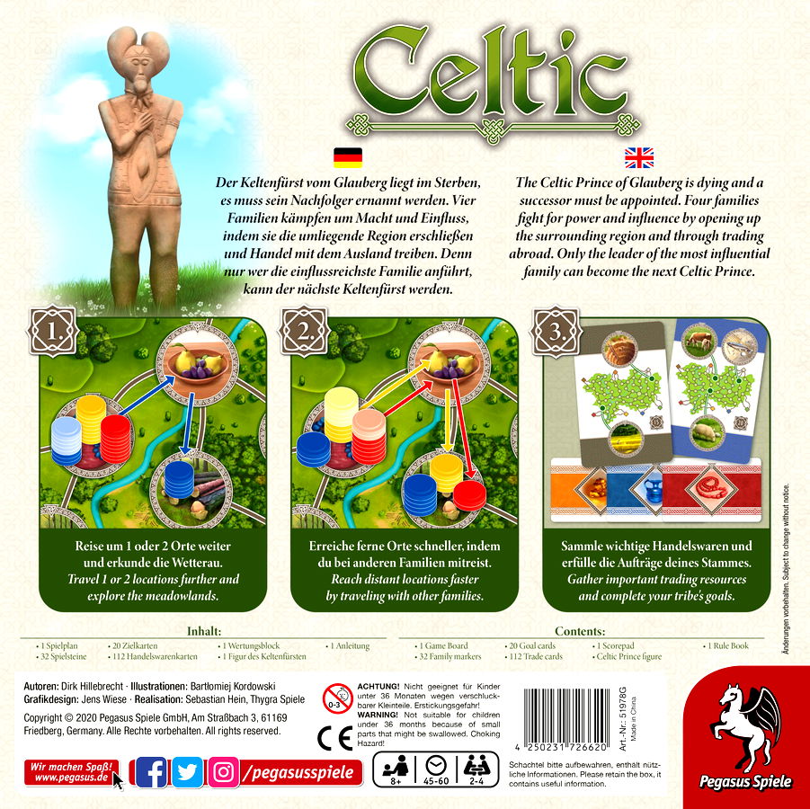 The Celtic Lord of the Wetterau is looking for a successor. To prove themselves worthy, players have to travel the region and trade with neighboring tribes. Each turn they have to perform one movement with their family members; other players at their starting location can decide to join them. While ...