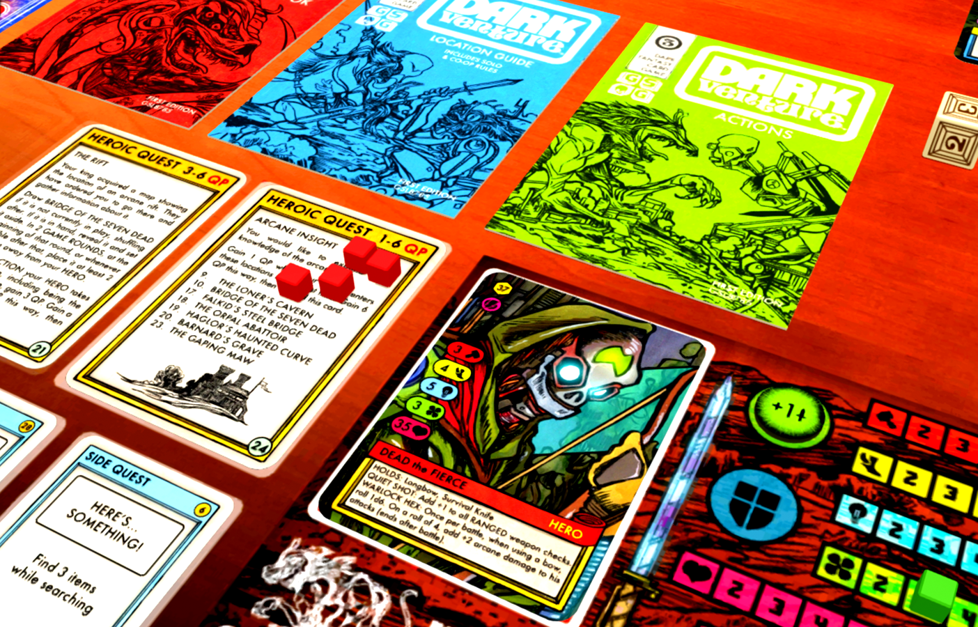 Dark Venture is a retro, story-based, adventure card game where players construct a twisting narrative to explore a dystopian future with their heroes, completing quests to win the game.