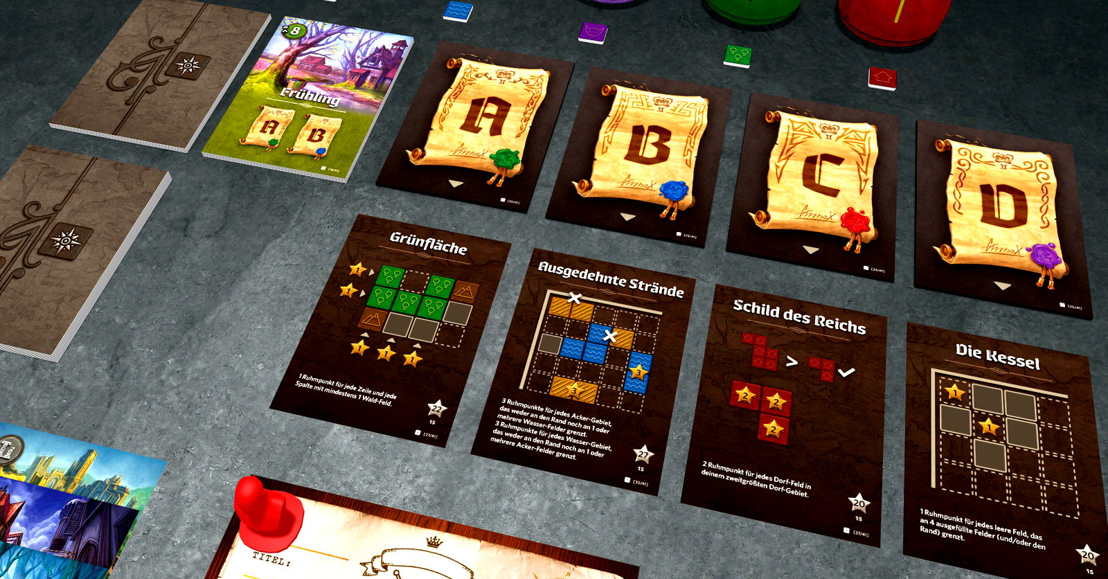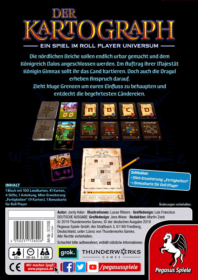 Die nördlichen Reiche sollen endlich urbar gemacht und dem Königreich Nalos angeschlossen werden. Im Auftrag ihrer Majestät Königin Gimnax sollen die Spieler das Land kartieren. Doch auch die Dragul erheben Anspruch darauf. Die Kartographen müssen kluge Grenzen ziehen, um sich zu behaupten und dabei...