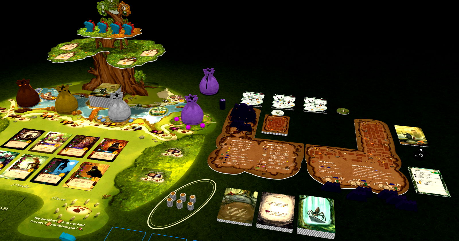 Mistwood offers some expansion content that may be included when playing Everdell and its other expansions. In addition, Mistwood features a challenging new solo and two-player game mode, Nightweave’s Lair.