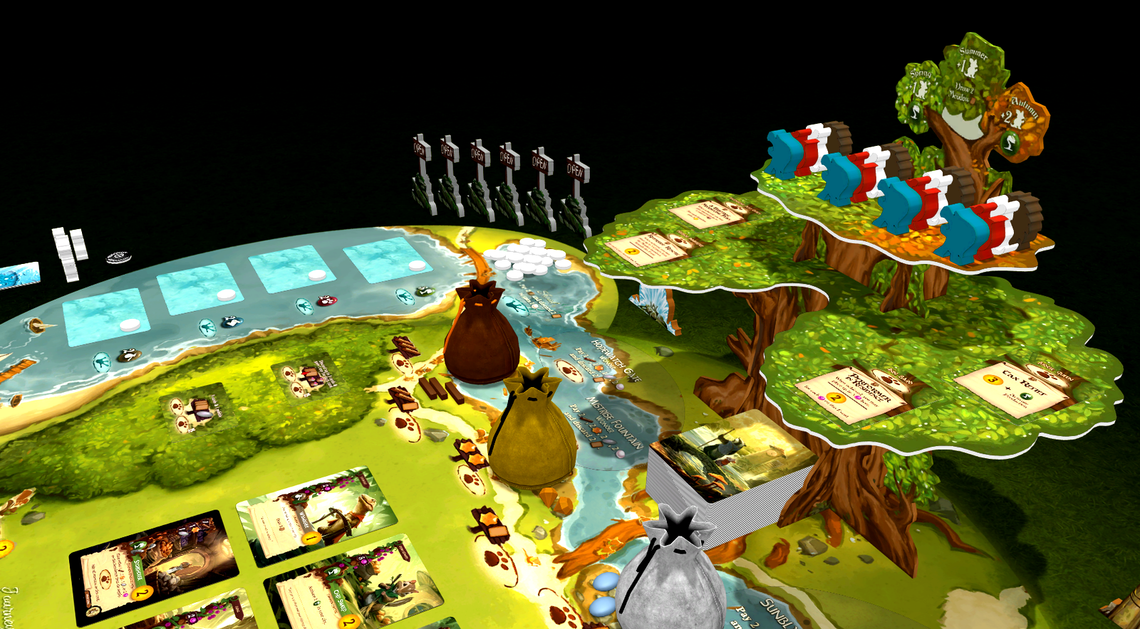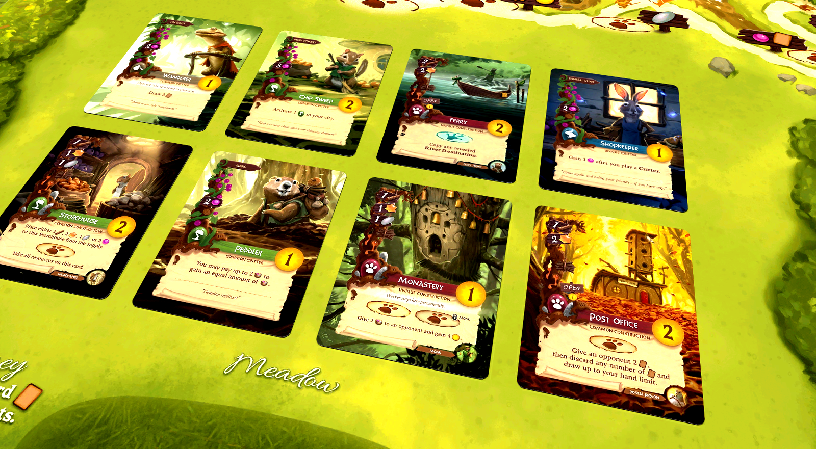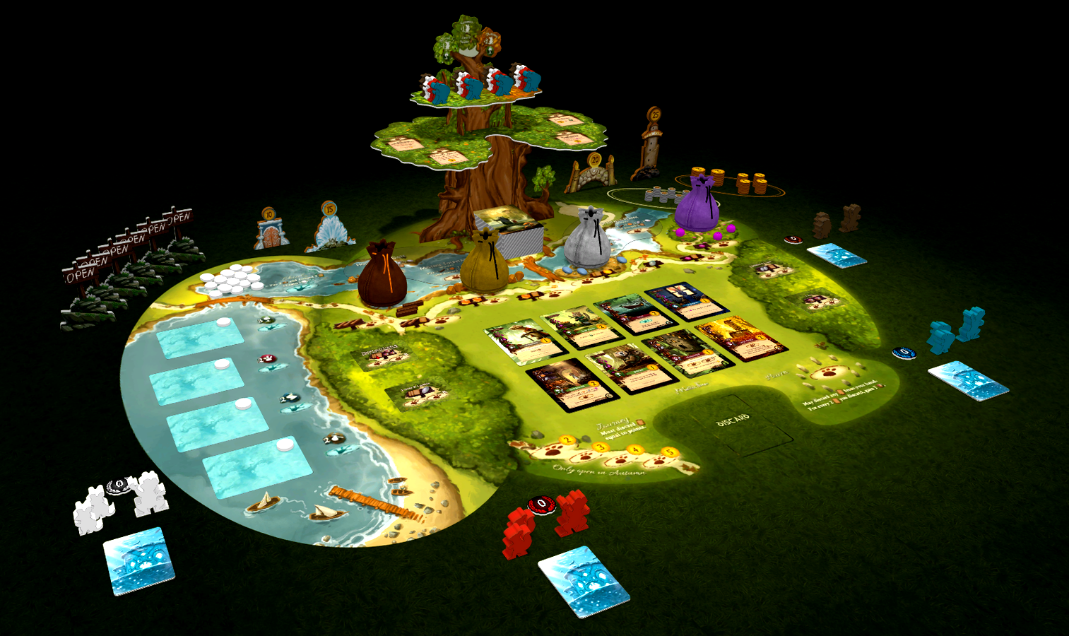 Pearlbrook introduces a new side board, the river board, where you'll send your frog ambassador to gather a new resource: pearls. You'll also encounter new aquatic critters and constructions! Collect enough pearls and you can construct fabulous wonders and adornments, to make your city the pride of Everdell!