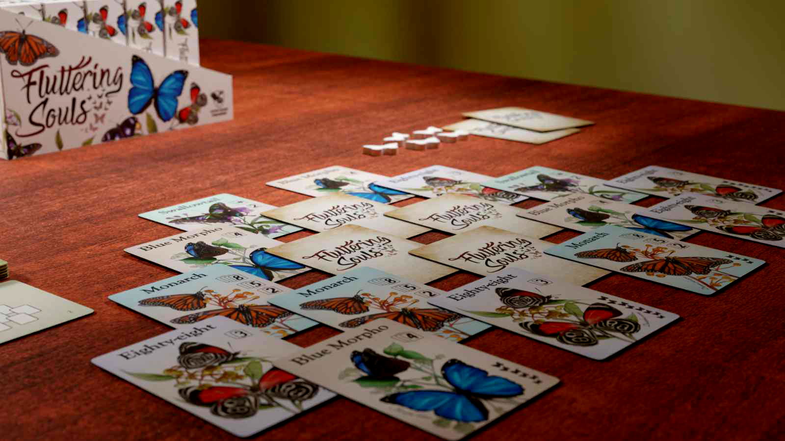Fluttering Souls is a captivating and beautifully illustrated two-player card drafting game based on the Japanese legend of The White Butterfly. Collect a kaleidoscope of butterflies in the hope of being visited by the White Butterfly; the soul of a lost loved one.