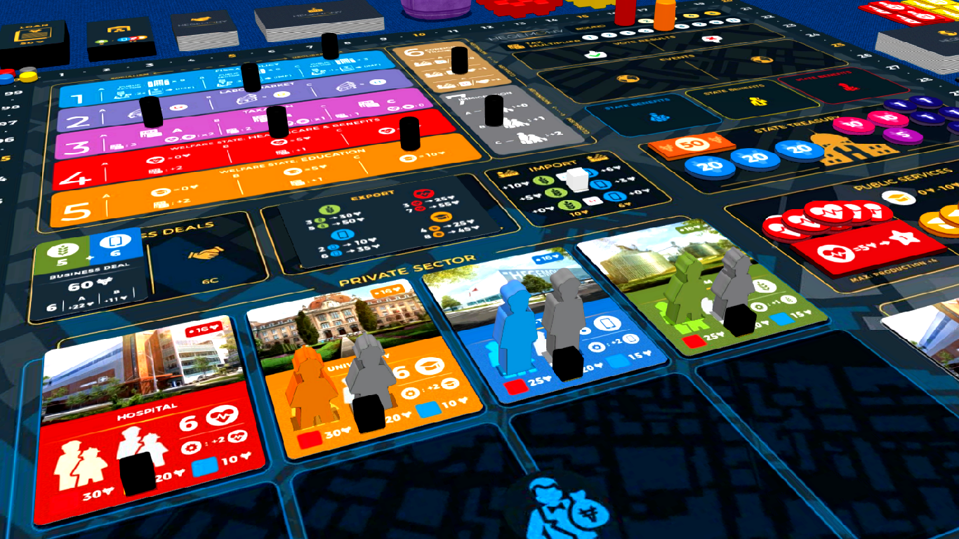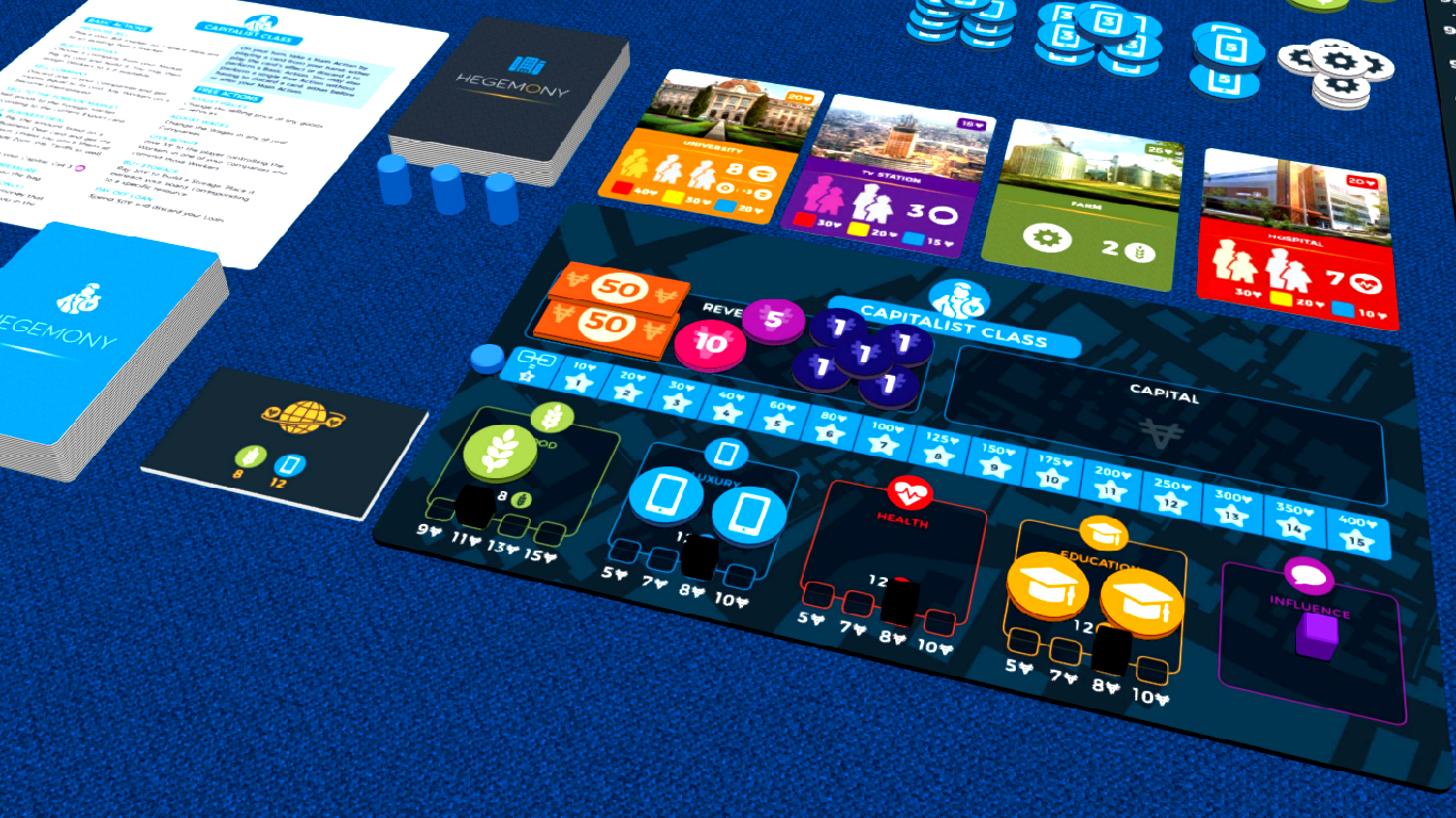 Hegemony is an asymmetric politico-economic card-driven board game for 2-4 players that puts you in the role of one of the socio-economic groups in a fictional state: The Working Class, the Middle Class, the Capitalist Class and the State itself.