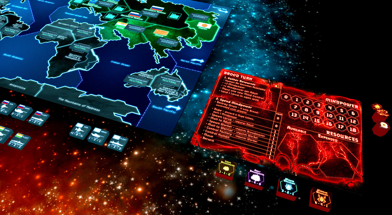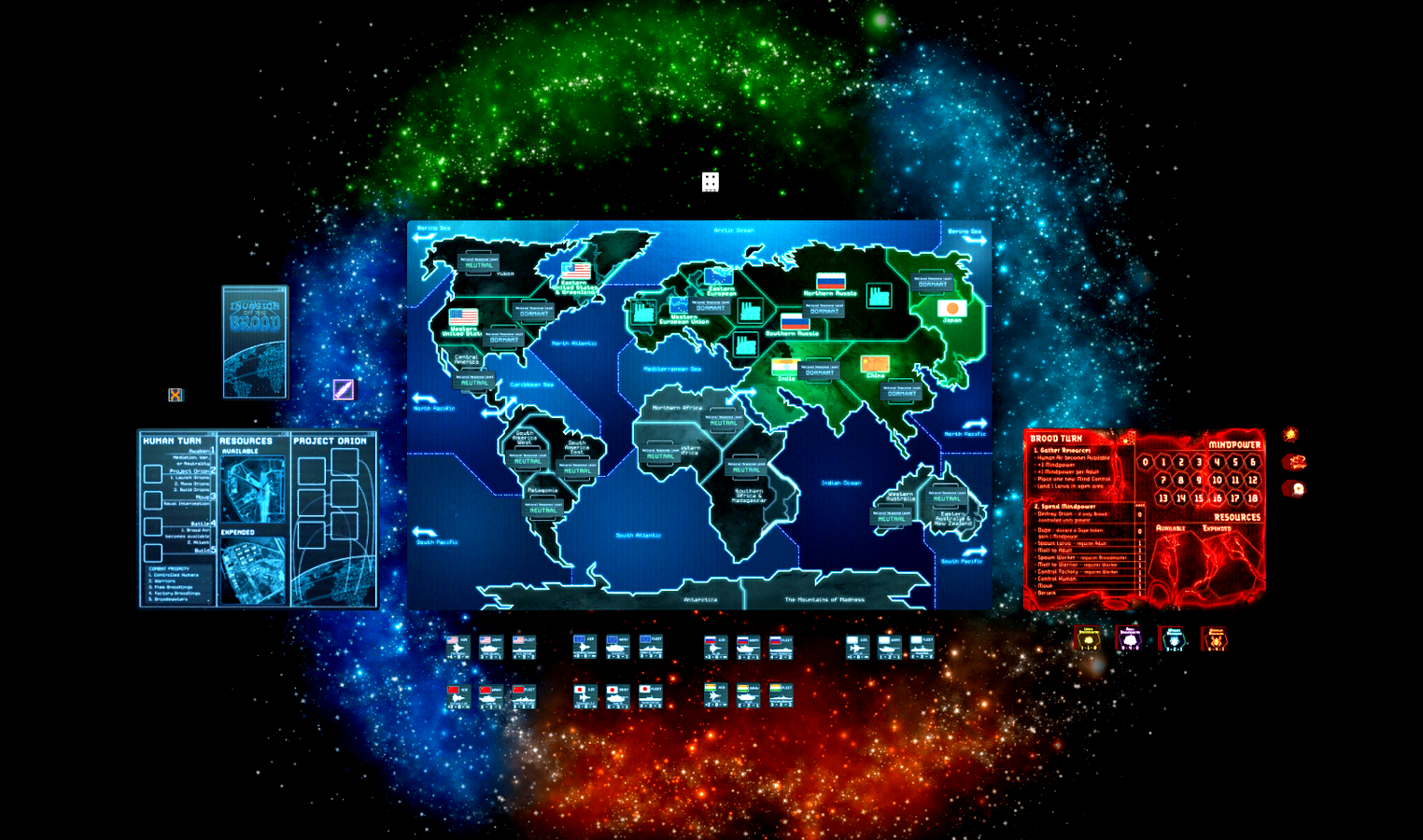 As the Broodmaster player, you must subvert the Earth, using your mind control to gradually take control of Earth’s most vital defenses.