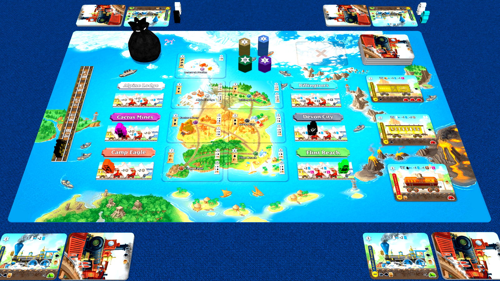 The game ends when a certain number of contracts have been completed, or a certain number of passengers are delivered. You win by scoring the most points, which you earn by building up your train, completing contracts, and delivering passengers.