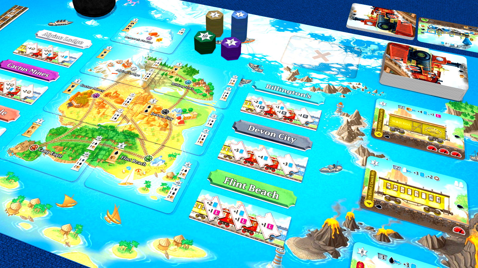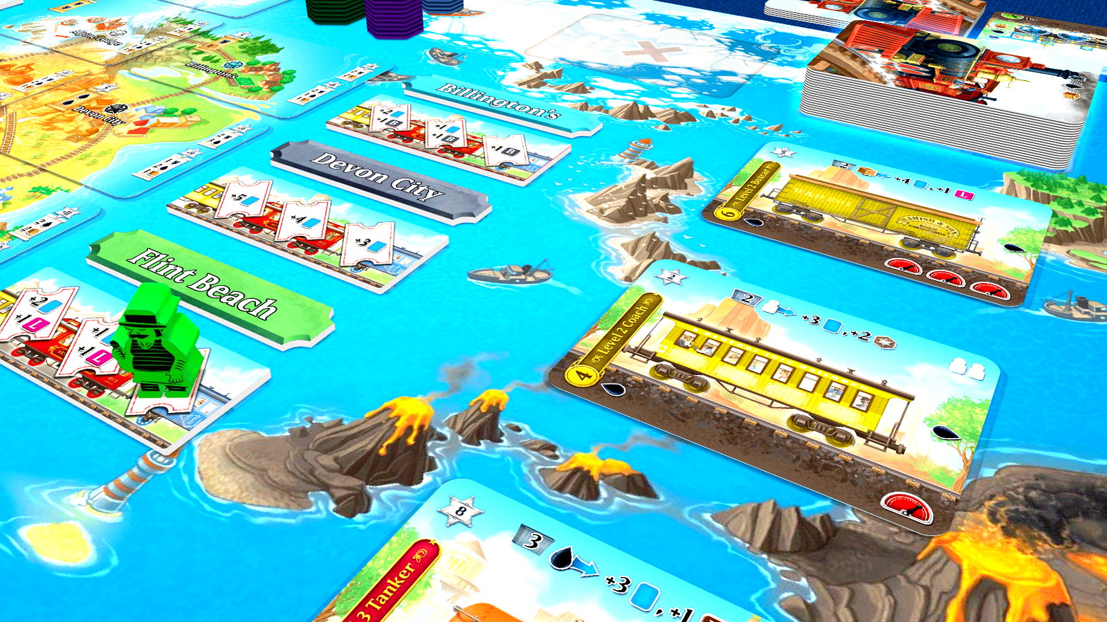 Isle of Trains: All Aboard is all about balancing the need to upgrade your train, with loading cargo or passengers onto opponent’s train for big bonuses, and delivering cargo and passengers to their destinations before anyone else. Build your engine effectively enough to be remembered as the greatest train conductor on the Isle of Trains!