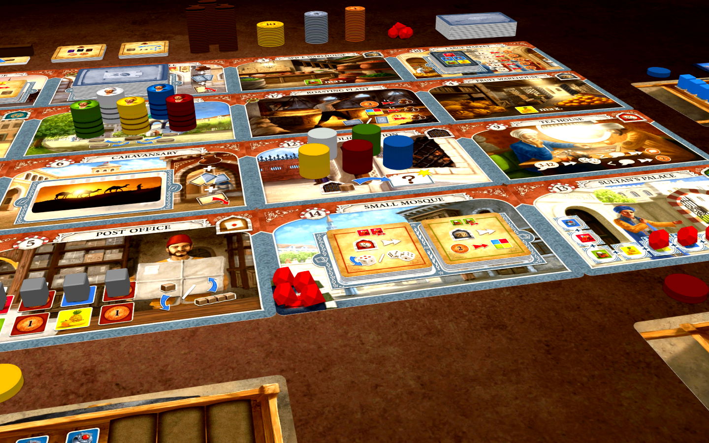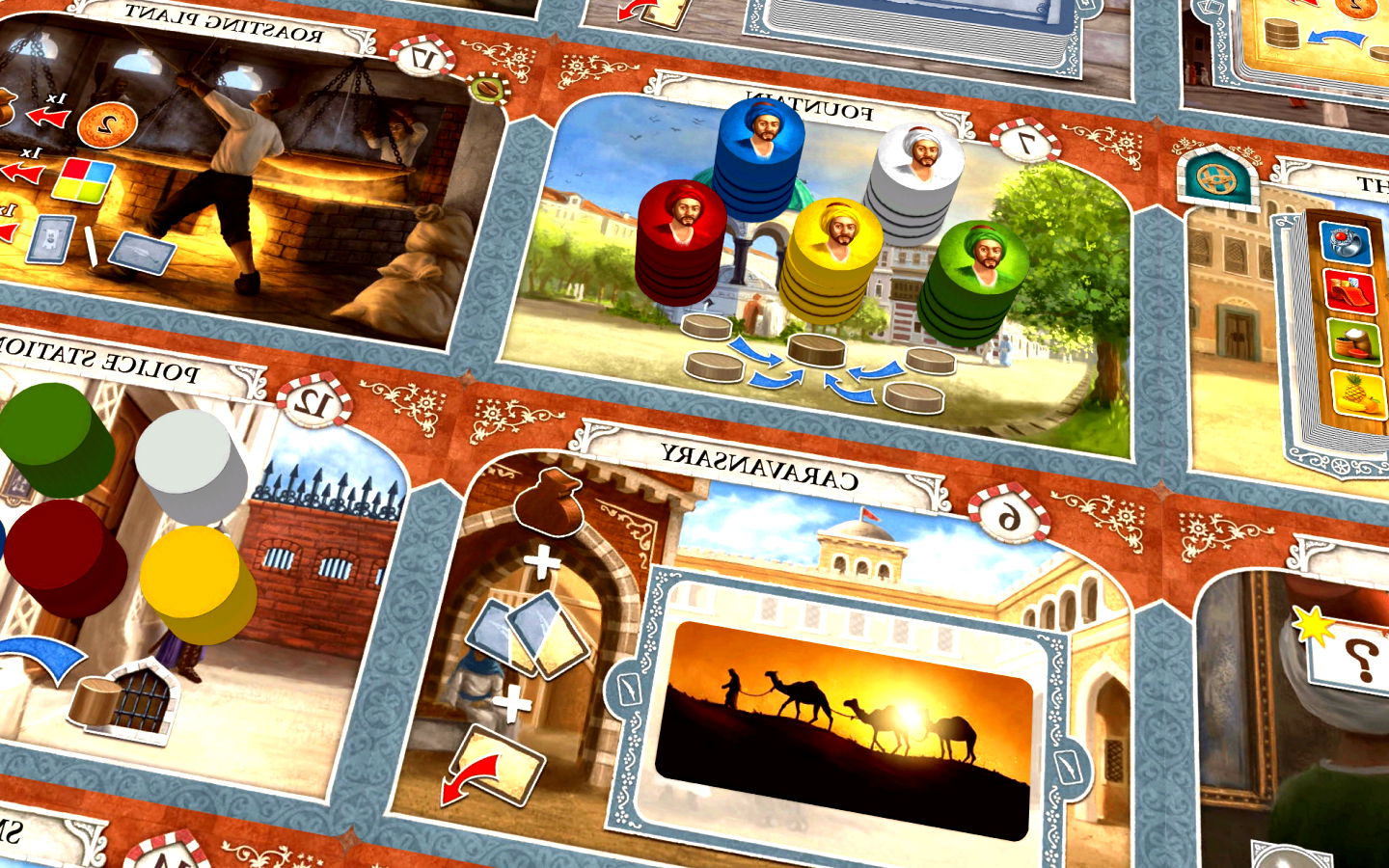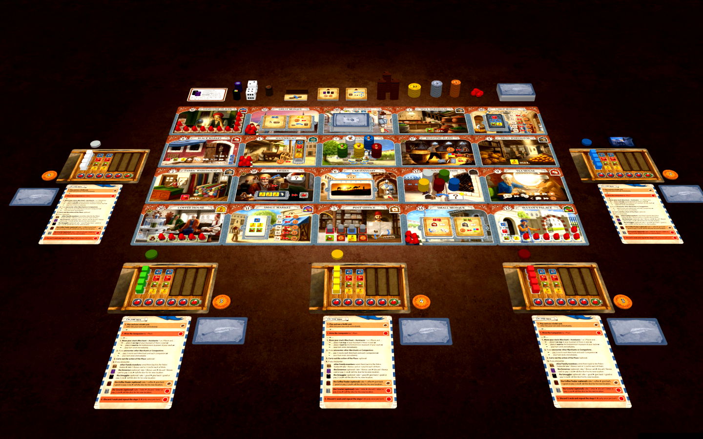 This combination also gives players the option to play on a big 5 x 5 tiles bazaar.