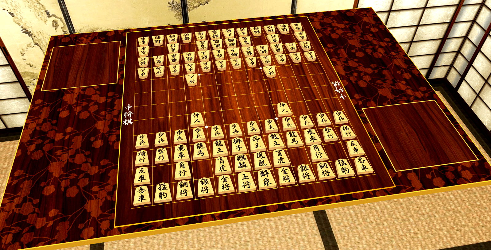 The game is much larger than Chess and Shogi. The pieces consist of such interesting pieces as the Drunk Elephant, Phoenix, Kylin, Free Boar, Flying Ox, and many other colorfully-named pieces including the incredibly powerful Lion.