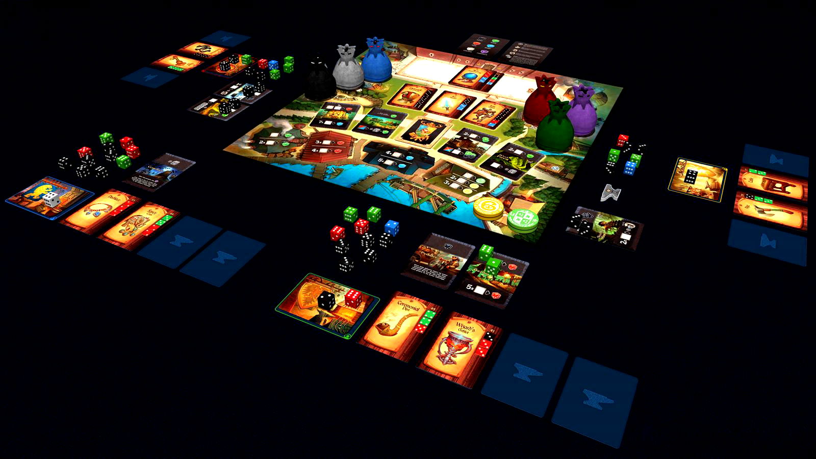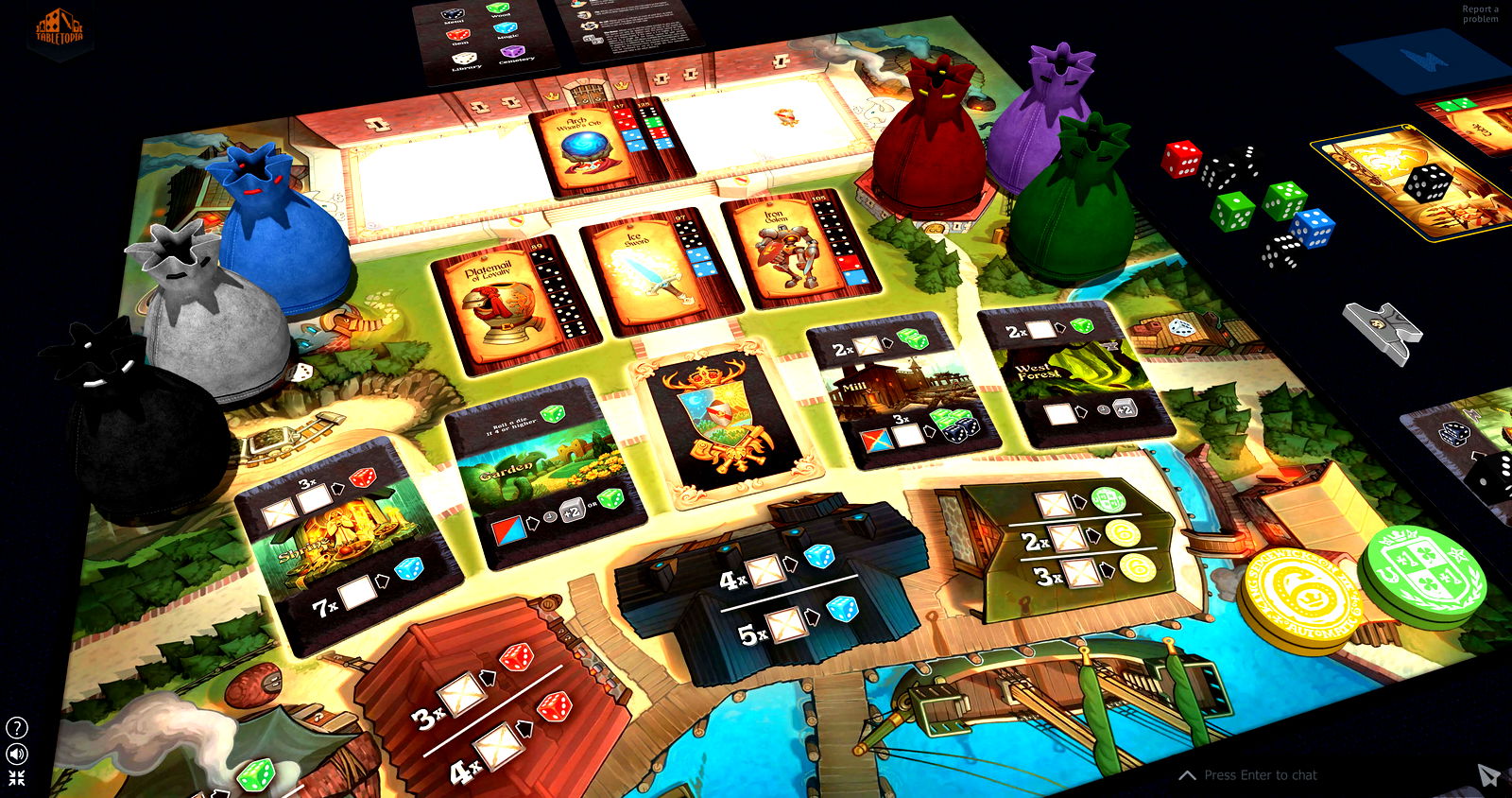 In King's Forge, players are craftsmen and craftswomen seeking to become the favorite of the King. A variety of dice represent the raw materials (metal, wood, gems, and enchantment) and those same dice can be used to gather new dice and purchase roll-modifiers, or saved and rolled in an attempt to meet the requirements to craft the items on the King's list. An early lead is not a sure path to victory and other players will out-maneuver and out-build you whenever possible. Careful dice management, advance planning, fierce competition, and nail-biting luck will carry you to winner's circle.