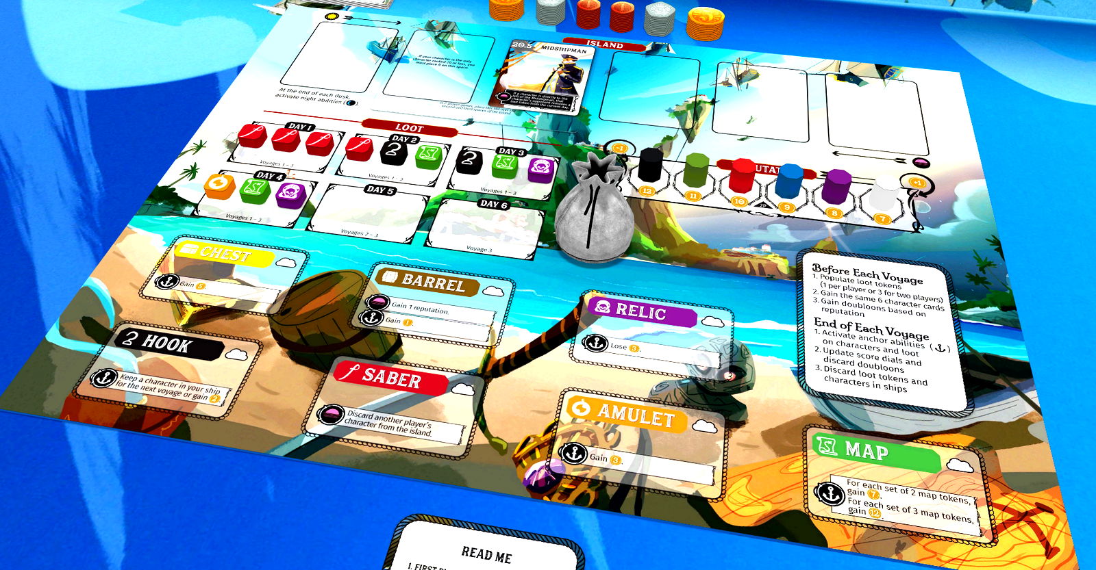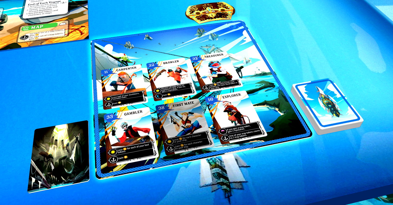 In the world of Galecrest, sky pirates set sail on the winds in search of adventure, treasure, and glory. As an admiral, you command a vast and varied crew … but so do your rivals sailing other ships in the pirate fleet. Each day the fleet lands on a different island where you’ll send a crew member to collect your share of the loot, hoping they’ll return to boost your growing group of characters.