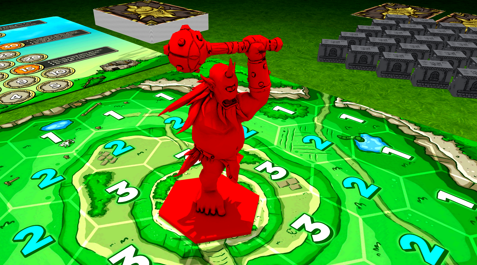 You are a duke trying to build up your lands where the monstrous fachan is rampaging. But he is just lonely. Your cunning plan is to make a false bride for him just behind your rivals’ buildings. The love-struck monster will crash through the other dukes’ lands, destroying them, while you continue t...