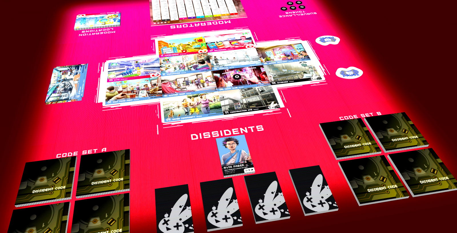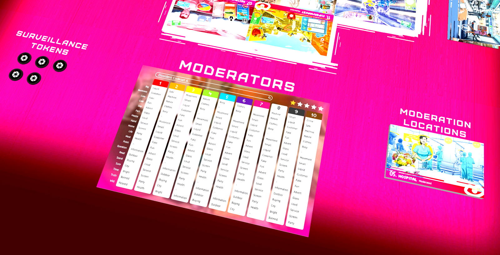 NewSpeak is a game of code-breaking and subterfuge, set in a bleak near future for three to eight players.