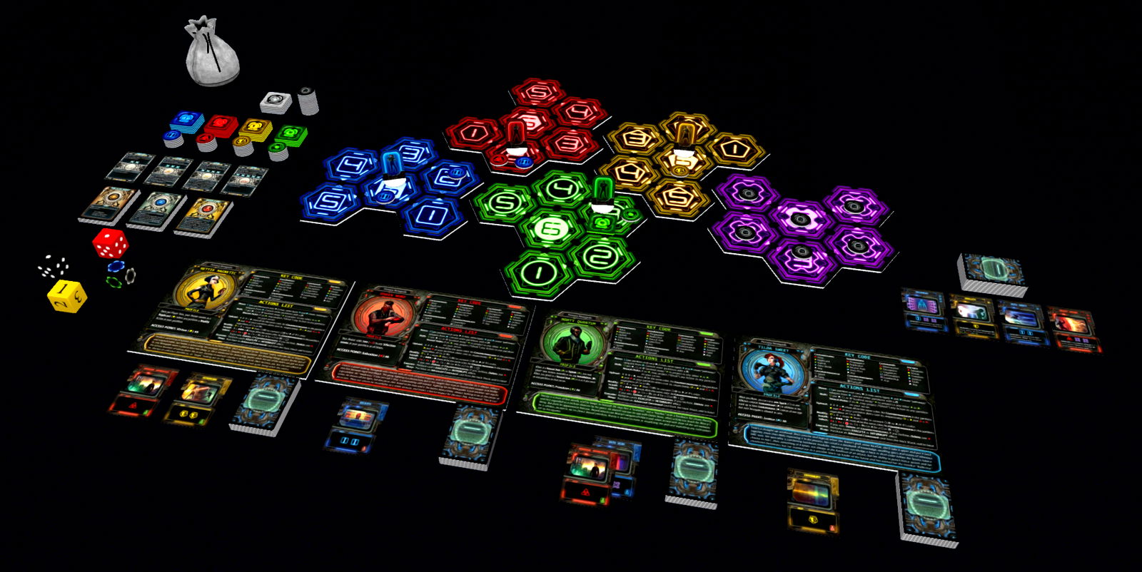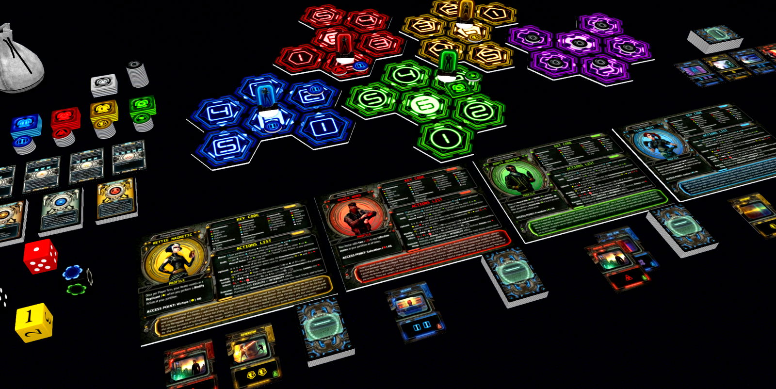 Renegade is an abstract-euro thematic deck-building game for 1 to 4 players. You are a new breed of Decker - a Renegade. You will hack into a network of five servers, operated by one of four Super-Massive-Computers (SMCs). Each of these four SMCs have their own AI and increasing complexity to defeat. You must survive a series of Countermeasure events before the network becomes overrun by Sparks and Guardians. Once you are jacked into an SMC’s servers, with a profile bringing its own special ability, you will move across its partitions and fight to take control of the network by using informational, destructive, deceptive and cognitive attacks.