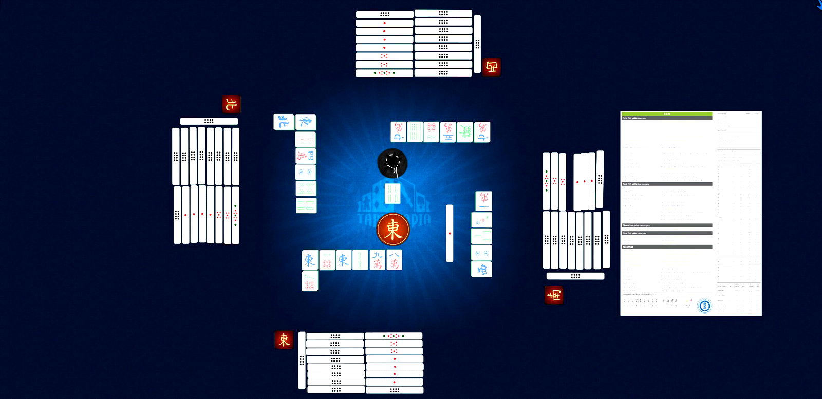 3) Riichi: When a player is Tenpai (one tile away from having a Mahjong hand, valid or not), he can bet a 1000 points chip to add one Yaku to his hand (thus validating a possible invalid hand). Winning with a Riichi hand allows access to the hidden ura-dora, which is an added dora indicator located underneath the revealed dora tile.