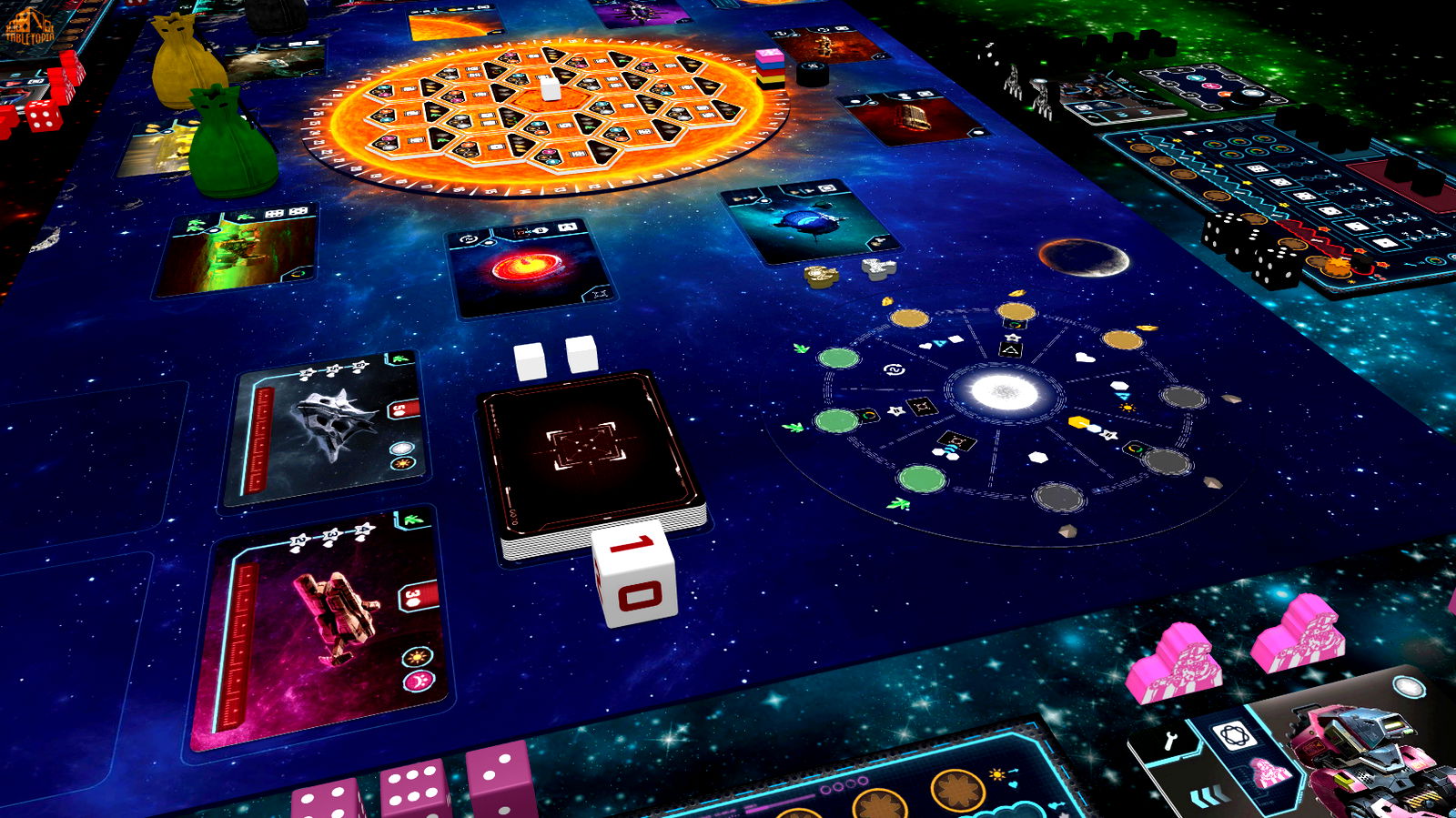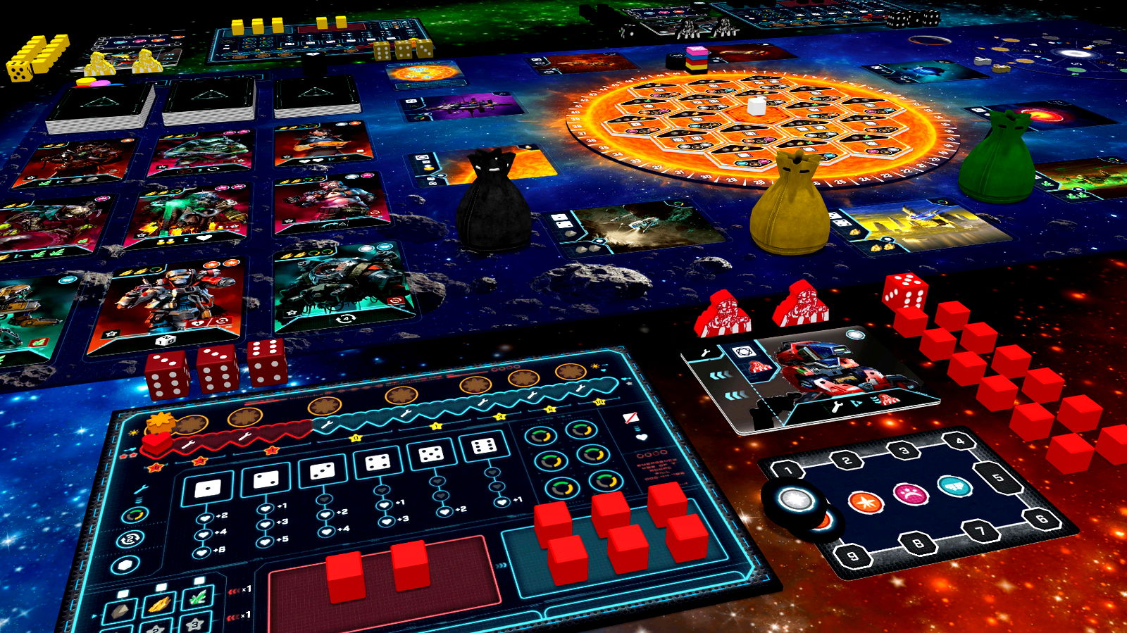 In this dice placement game, players can manipulate their dice using drones. However, players have a limited supply of drones, which are also used to upgrade dice placement spots or to support in fights against aliens. Players can always recycle used drones to get them back into their supply. Or, spend them for instant benefits.