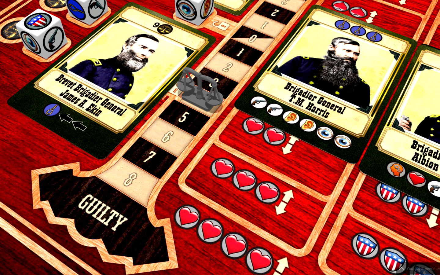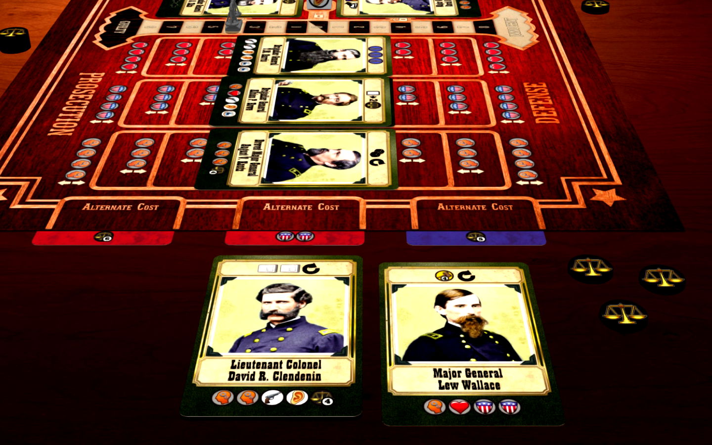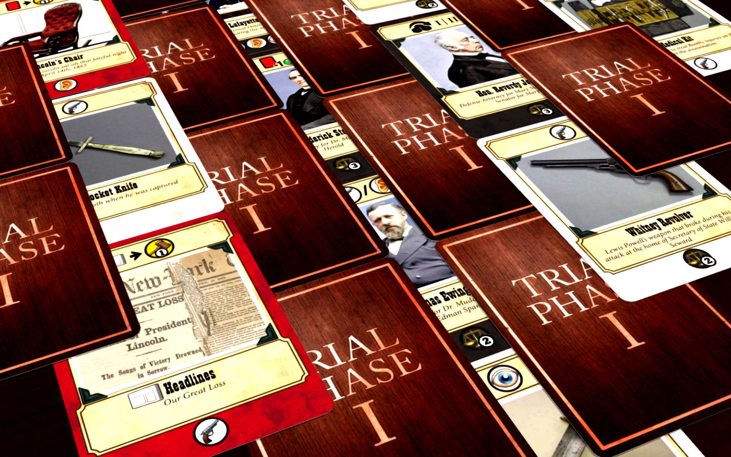 The game begins amidst the chaos of Lincoln's assassination as the country struggles to heal over the wreckage of the American Civil War. Each player is persuading the jury to convict or acquit the accused and thereby win the game.